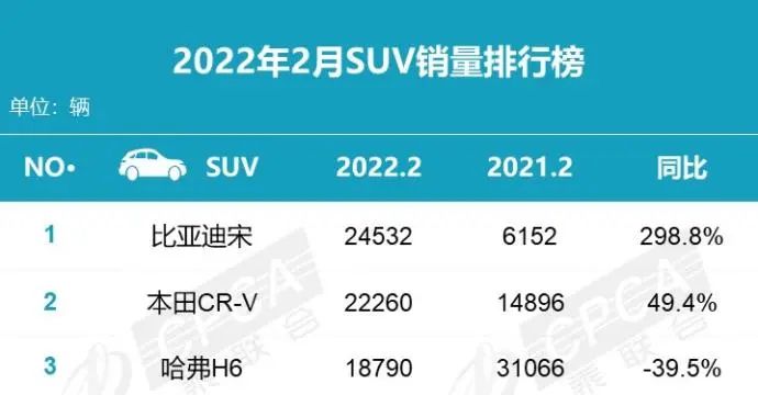 中国工业协会数据显示,2021年9月,哈弗H6的SUV销售冠军之位,被特斯拉Model Y夺走,终结累计99个月SUV销量第一的神话。据乘联会数据,2022年2月,哈弗H6被比亚迪宋和本田CR-V超越,仅排在SUV销量榜第三位。这意味着,长城汽车依赖的SUV大本营,开始失守。