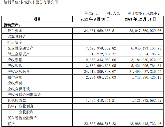 反映到财报上,杠杆游戏注意到,截至2022年9月末,长城汽车的存货为226.34亿元。