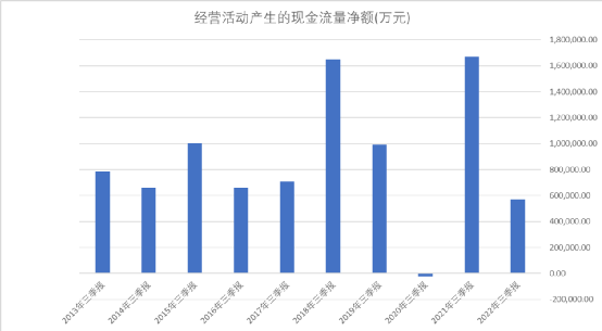 星空君认真分析了下现金流量表的各个项目,发现公司购买商品、接受劳务发生的现金流支出远超往年同期,尤其是第三季度,短短三个月,增加了400亿左右。