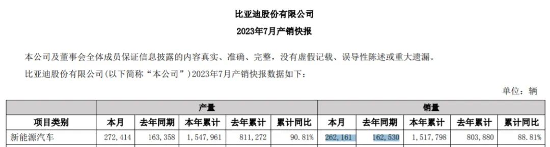 2023年1月至7月,比亚迪新能源汽车销量已经超过150万辆。其中,比亚迪7月新能源汽车销量超过26万辆。对比国内其他新能源汽车企业,尚未有一家的月度销量超过10万辆。