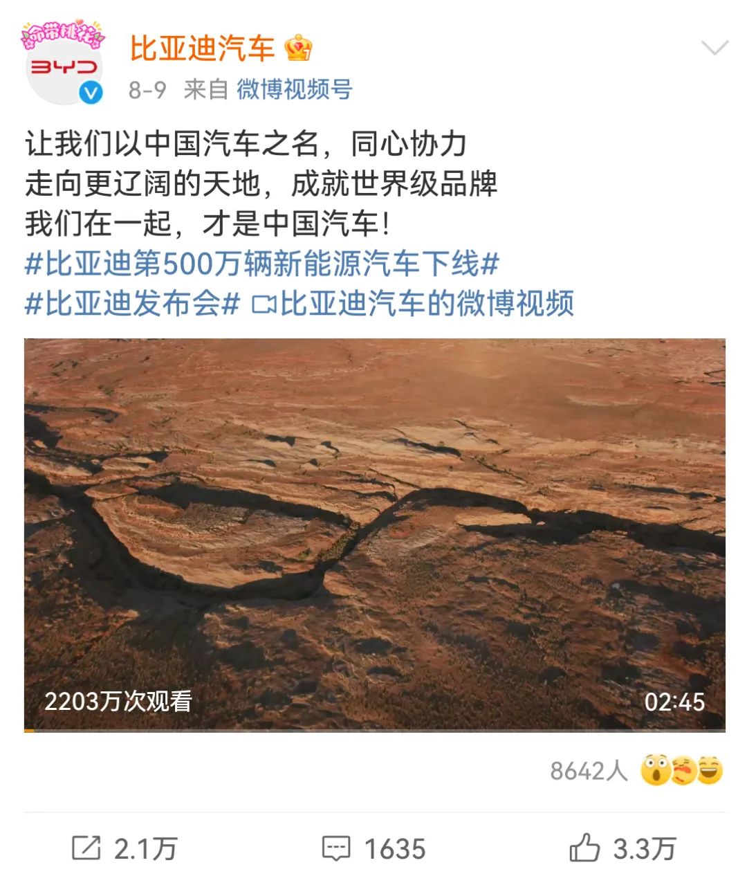 8月9日晚间,比亚迪汽车微博发布一段致敬中国汽车的VCR,被比亚迪提及的多家汽车品牌迅速回应。