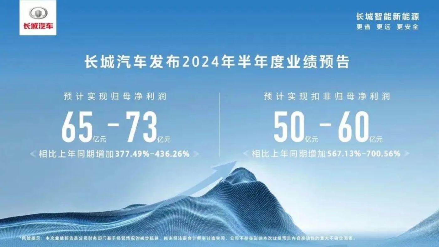7 月 11 日,长城汽车通过一份上市公司公告,发布了它在 2024 年上半年的业绩预告。这份预告的目的,是为了告诉广大投资者:长城汽车盈利了,而且净利润比去年上半年多了很多。