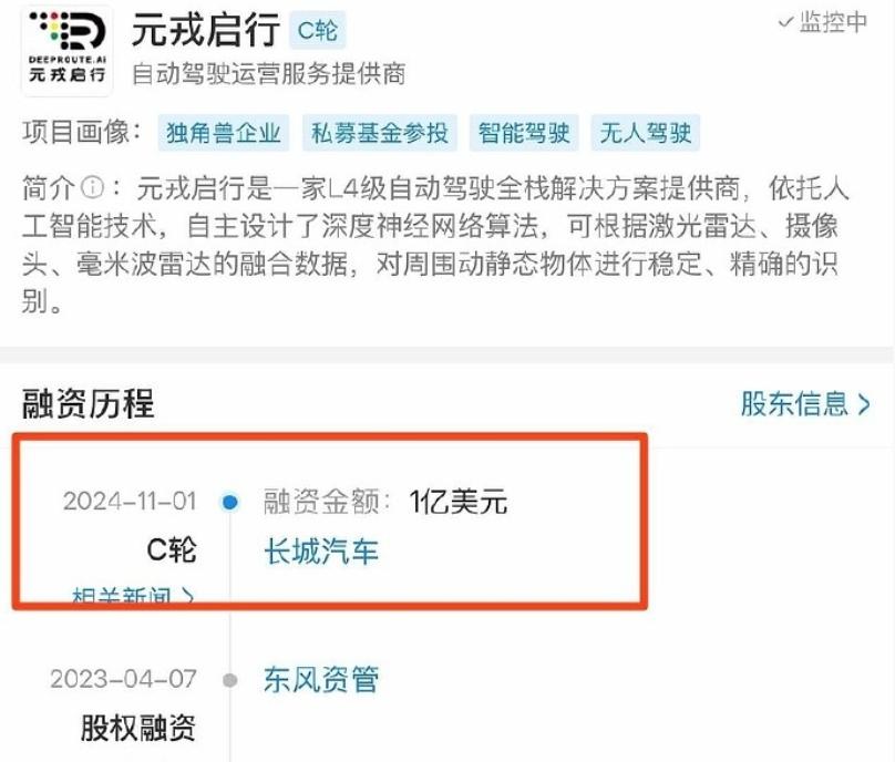 所以长城汽车在看到元戎有 NOA 量产落地能力后,就迅速确定了合作事宜。今年 11 月,元戎启行宣布完成 1 亿美元 C1 轮战略融资,由长城汽车独家投资。
