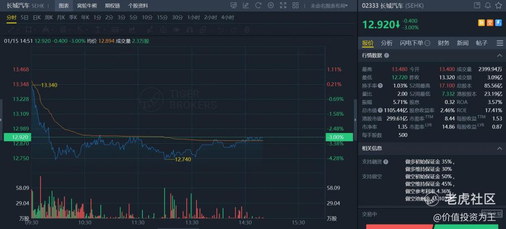虽然净利润大幅增长,但今日长城汽车股价走势并不好,早盘稍稍高开之后,快速跳水,一度下跌超 4%:$长城汽车( 02333 )$