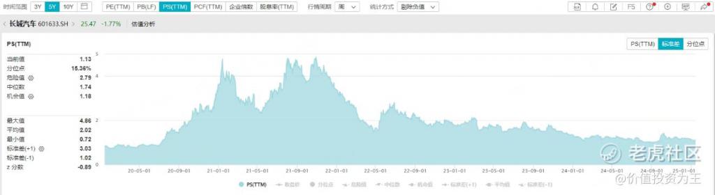 但从市销率估值上看,长城汽车 A 股为 1.1 倍,和比亚迪的 1.2 倍相近: