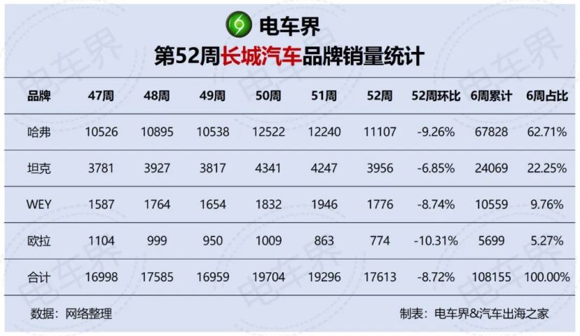 电车界2月27日消息,长城汽车第8周(2月10日-2月16日)销量出炉,整体销量环比第7周上涨21%。