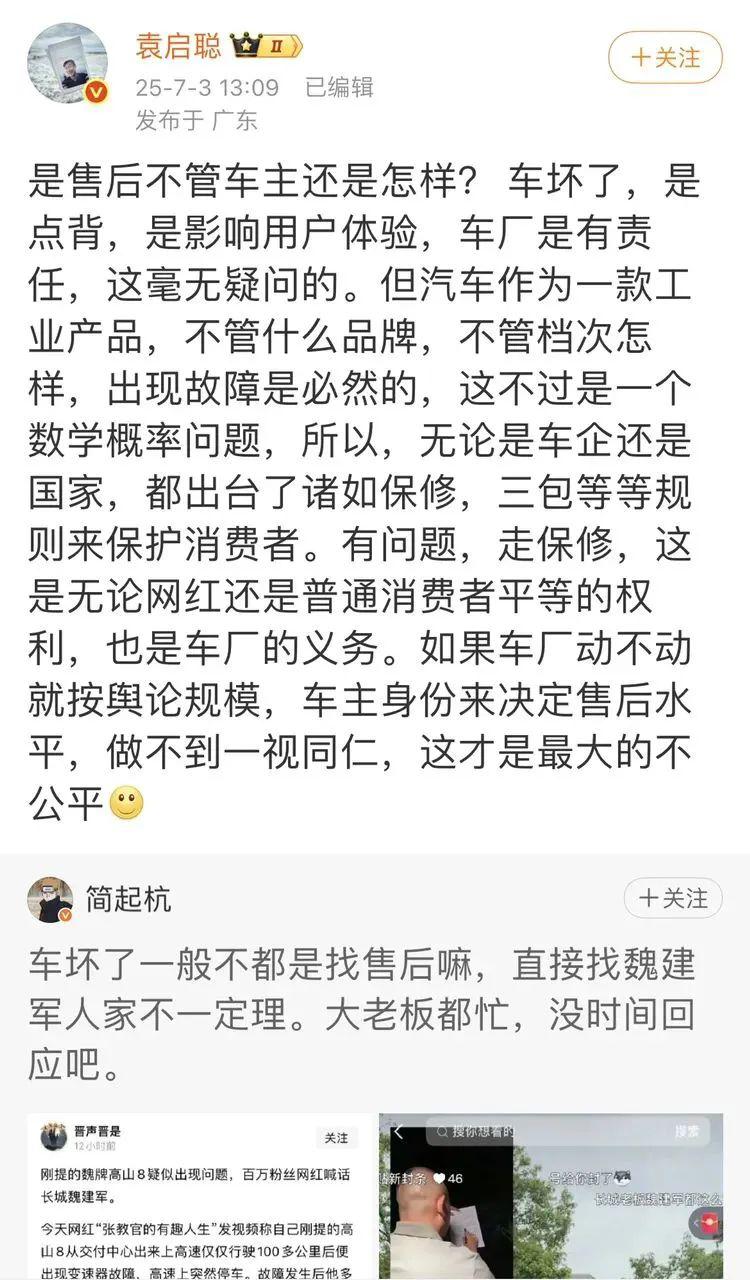 事件引发广泛讨论。部分网友认为,魏牌处理流程合规,甚至因对方是网红给予更高规格响应;而博主坚持对话董事长的要求被批"另类",有借流量施压之嫌。