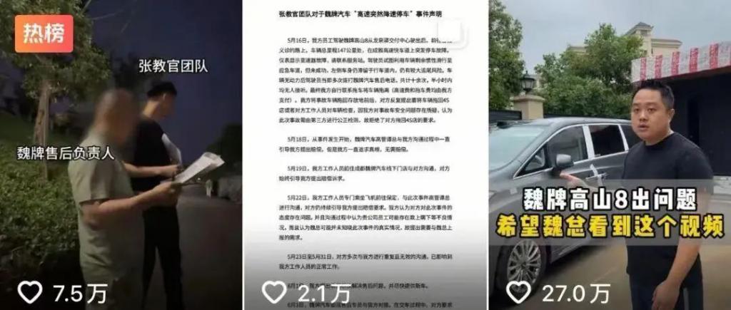 次日,张教官发文反驳,质疑魏牌指定的检测机构"汽车召回网"无资质,并称魏牌员工"欺上瞒下",魏建军可能被蒙蔽。其团队还曾专程飞往保定要求面见魏建军,坚称"追求真相,无需赔偿"。