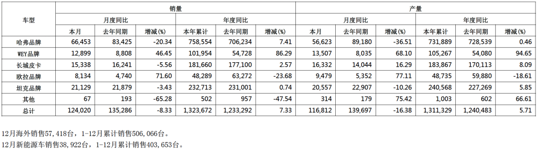 「图片来源:长城汽车2025年12月产销快报」