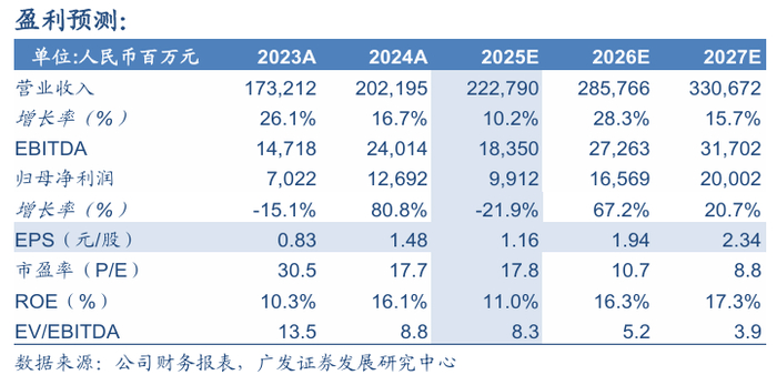 (3)欧拉品牌:24-25年欧拉品牌缺乏有市场竞争力的新车销量持续下滑。往后展望,综合考虑国内中低端新能源车受定比例以旧换新补贴政策的影响、公司欧拉新车型的竞争力和公司出口的规划,我们预计欧拉品牌26-27年的销量分别为15/17万辆;