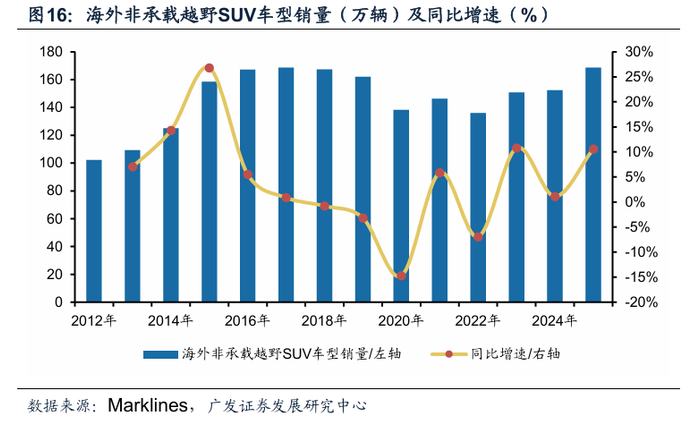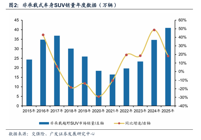 (二)“方盒子”SUV市场销量25年同样再创新高,对非承载车身SUV影响较小