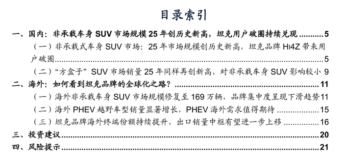 一、国内:非承载车身SUV市场规模25年创历史新高,坦克用户破圈持续兑现