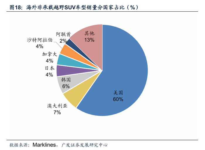 25年海外非承载车身SUV市场修复至169万辆。根据Marklines数据,2025年全球非承载车身SUV市场规模为168.6万辆,同比+10.6%。分国家来看,美国非承载车身SUV市场规模最大,其2025年销量为100.6万辆,占海外非承载车身SUV市场销量比例为60%。澳大利亚、韩国和加拿大2025年销量分别为11.5、10.6和6.8万辆,同比分别+8.2%、+6.8%和+17.4%。