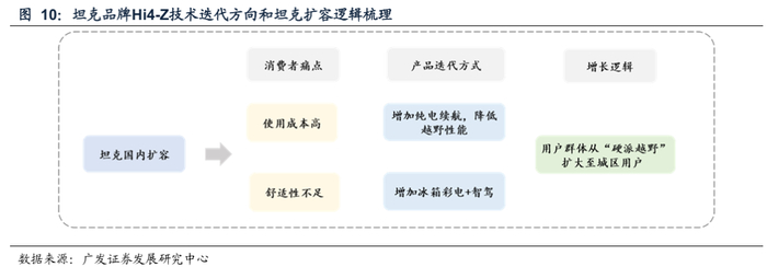 长城汽车通过Hi4-Z技术创新进一步降低城区使用成本。长城汽车Hi4-T技术主打硬派越野,保留了独立变速器,可以实现低速大扭矩,依然是传统的机械四驱系统(非解耦)。Hi4-Z技术采用前后解耦的电四驱解决方案,增加了WTLC纯电续航至201km,大幅降低城市通勤用车成本,同时提高了舒适性配置,符合消费者对“轻度户外+城市通勤”的需求。