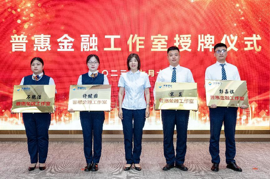 为积极贯彻落实国家普惠金融发展战略和乡村振兴战略,更好推动齐鲁银行普惠金融转型发展、创新发展、特色发展、稳健发展,擦亮惠民、利民、便民的金字招牌,近日,齐鲁银行在总行举办了普惠金融工作室授牌仪式,在济南地区成立了彭嘉祺、宋昊普惠金融工作室,在德州宁津、临邑分别成立了许健囡、石艳洁普惠金融工作室。成立以优秀普惠客户经理命名的普惠金融工作室,旨在持续提升金融服务的可得性和满意度,践行齐鲁银行服务地方经济、服务城乡居民的初心使命,持续探索提升普惠金融服务质效。