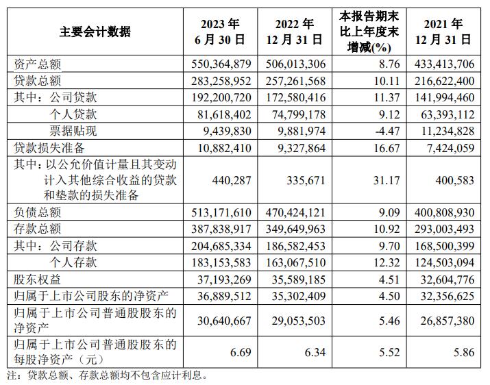 截至今年6月末,齐鲁银行资产总额5,503.65亿元,较上年末增长8.76%;贷款总额2,832.59亿元,较上年末增长10.11%,贷款占资产总额比例51.47%,较上年末提升0.63个百分点;普惠、涉农、绿色贷款增速分别达到13.75%、12.62%、19.20%,高于贷款平均增速。负债总额5,131.72亿元,较上年末增长9.09%;存款总额3,878.39亿元,较上年末增长10.92%,存款占负债总额比例75.58%,较上年末提升1.25个百分点。