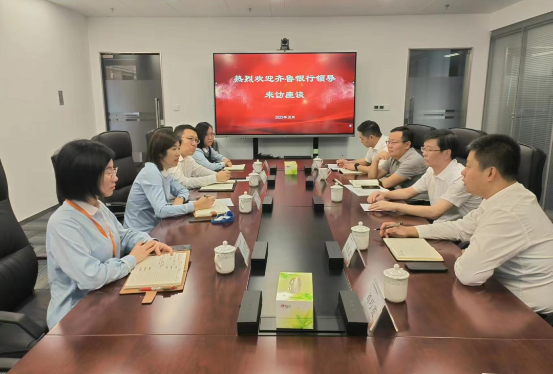 葛萍介绍了齐鲁银行普惠金融发展情况,与山东担保集团合作情况,希望与山东担保集团加大批量担保及园区贷、科创贷等产品的合作力度,充分发挥各自优势,在获客渠道、风险防控方面实现新突破,推动双方合作迈上新台阶。