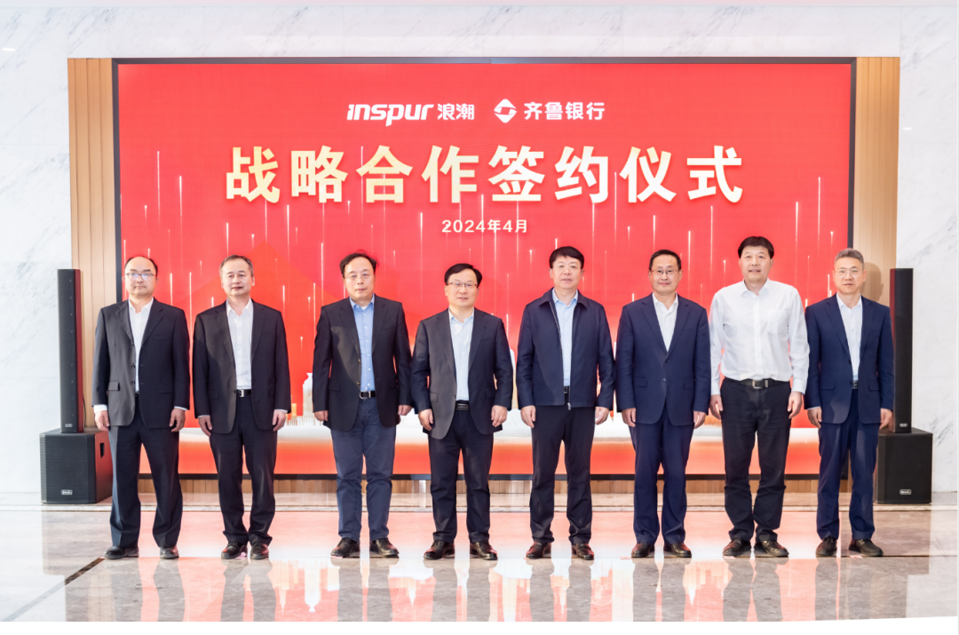 4月1日,浪潮集团与齐鲁银行在济南签署战略合作协议。浪潮集团党委副书记、总经理刘继永,齐鲁银行党委书记、董事长郑祖刚,齐鲁银行党委副书记、行长张华出席签约仪式。浪潮集团财务总监孔祥泉,齐鲁银行党委委员、副行长陶文喆代表双方签署战略合作协议。