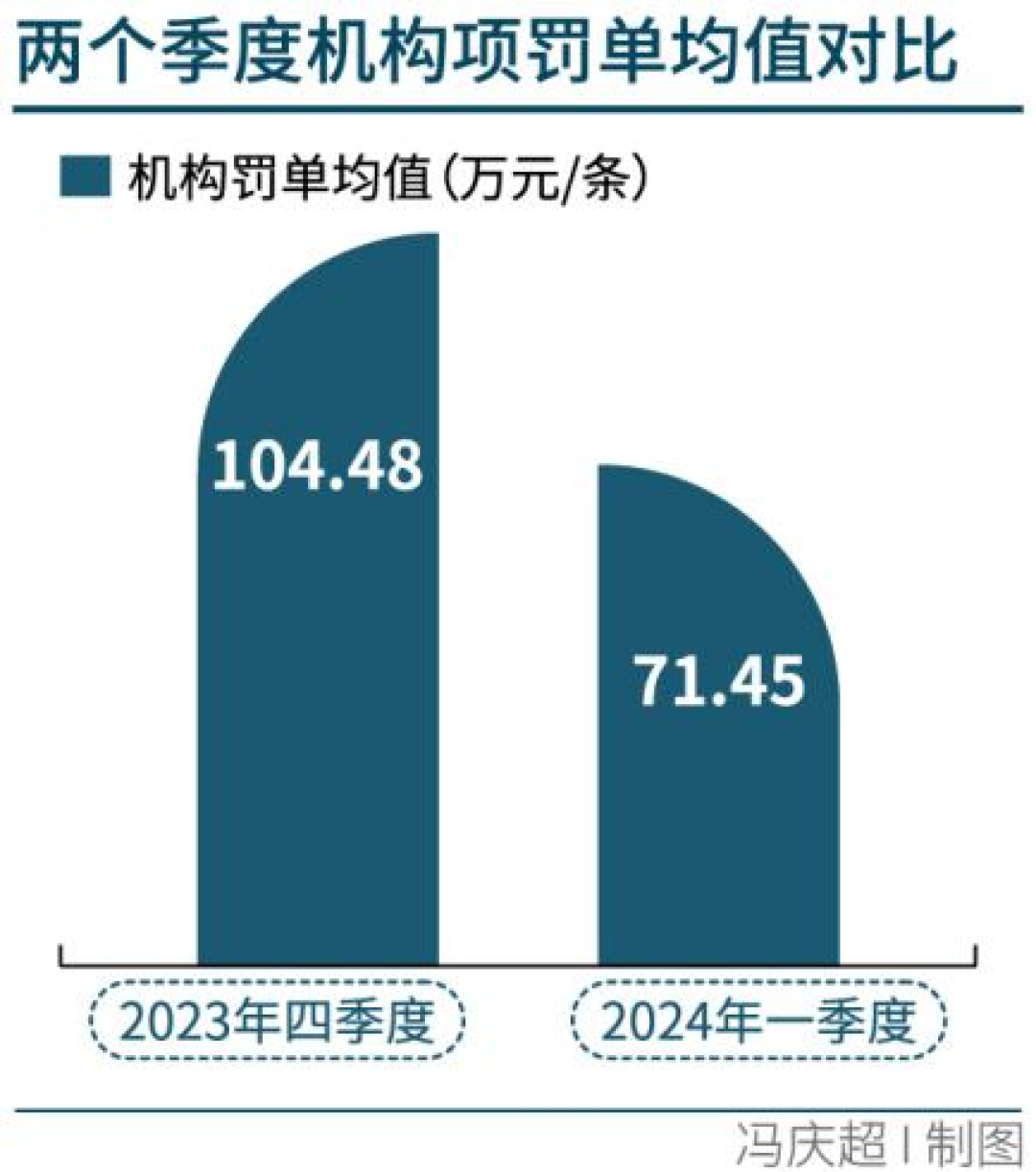 罚单均值是降抑或升了呢?一季度,机构项罚单均值为71.5万元/条,个人项罚单均值则为1.83万元/条。两项均值均较上季度有不同程度下降,尤以机构项罚单降幅明显,超过30%。