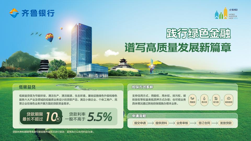 当前,中国经济正处于由高速增长向高质量发展转变的关键时期。在这一背景下,绿色金融作为促进经济社会可持续发展的关键工具和手段,重要性不言而喻。齐鲁银行作为山东省内首家城市商业银行,在推行绿色金融产品的创新与发展方面取得了良好的成果。2023年6月,为充分用足用好山东省碳减排政策工具,增加绿色低碳领域优惠贷款,齐鲁银行创新推出低碳益贷产品。