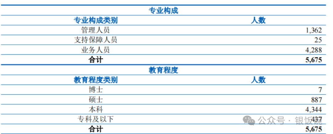 截至2024年末,齐鲁银行员工总数达5675人,较上年增长442人。其中业务人员占主体地位,共计4288人,占总员工数的75.6%;管理人员为1362人,占比约24%。