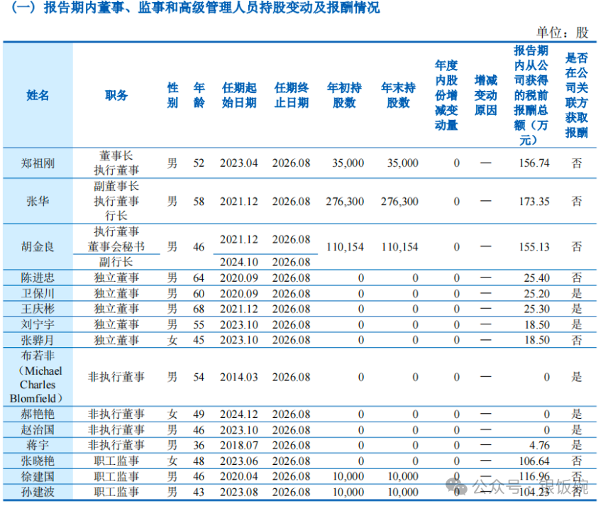 根据2024年年报数据,剔除独立董事及监事后的16位董事和高管,合计领取报酬1296.23万元,平均薪酬131.03万元,年薪中位数为145.66万元。