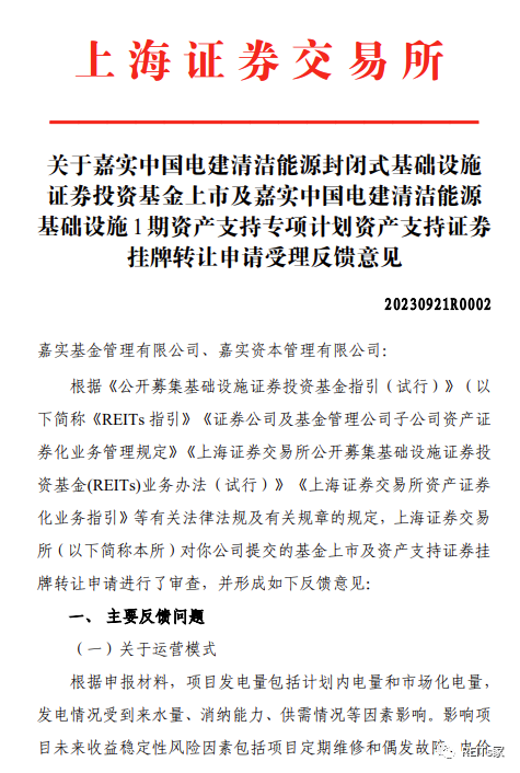 中国电建水电公募REITs获上交所问询 重点关注估值等问题