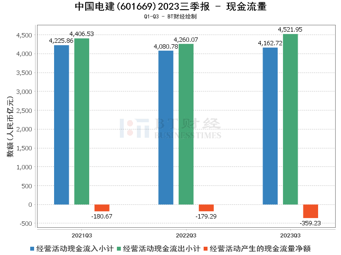 综上所述,中国电建在2023年三季报中展现了稳健的增长态势,总资产和营业收入均有所提升,但同时也面临着利润增长乏力和现金流净额下降的挑战。这可能意味着公司需要在未来的经营活动中更加注重效率和成本控制,以保持持续的盈利能力。