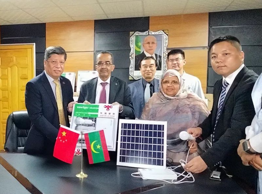 “百企千村”活动是由中国在非企业社会责任联盟发起,是国家主席习近平出席中非合作论坛第八届部长级会议时明确表示支持的活动,活动旨在促进当地经济、社会、环境的可持续发展,为构建新时代中非命运共同体贡献力量。为响应“百企千村”活动号召,中国电建向毛里塔尼亚捐赠了600套户用太阳能供电装置,以充分利用毛里塔尼亚丰富的太阳能资源,为缺乏电力供应的部分地区百姓带去光明,改善其生产生活条件。