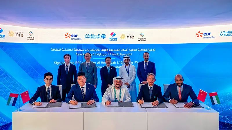 活动期间,唐玉华出席了沙特Round 4光伏项目-AHK 1100兆瓦光伏电站EPC合同签约仪式,会见了阿联酋MASDAR首席执行官Mohamed Al Ramahi和副首席运营官Fawaz Al Muharrami、沙特ACWA Power首席执行官Marco Arcelli和首席投资官Thomas Brostrom、日本丸红电力部高级运行官Yuji Sato、阿联酋AMEA Power董事长Hussain Al Nowais、国电电力总经理贾彦兵、金风科技副总裁兼金风国际董事长吴凯、隆基绿能副总裁佘海峰等多家中外企业负责人。