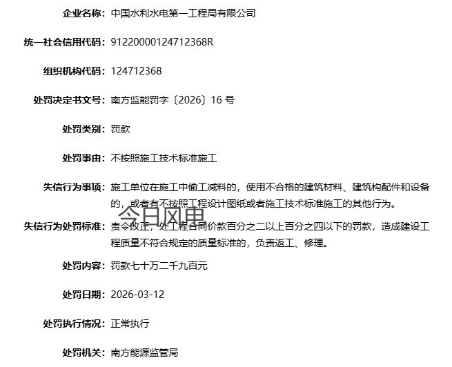 中国电建某公司被罚!