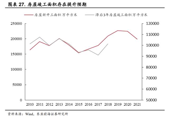从房屋新开工以及竣工面积的趋势来看,房屋竣工面积相对房屋新开工面积具有 3 年左右的滞后期。自 2015 年开始,国内的房屋新开工面积连续四年增长,从 2015 年的 15.45 亿平方米提升至 2019 年的 19.89 亿平方米,期间增幅达 28.8%。而 2020 年我国房地产竣工端受疫情影响在竣工面积上出现了一定的下滑,因此预期未来 1-2 年内国内房地产竣工面积仍将保持较高的增速。