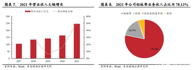 公司收入持续提高,铝板带箔为主要产品。