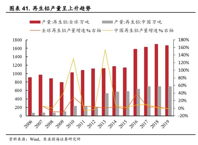 全球和中国的再生铝产量持续增长。