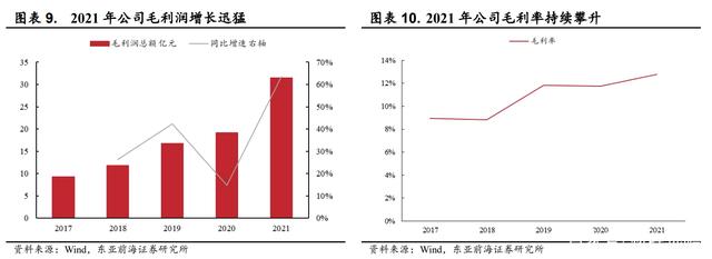 2021 年毛利润保持高速增长,毛利率不断攀升。