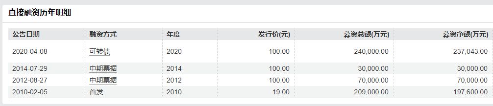 2010年2月23日,滨化股份在上交所上市,募资总额20.9亿元。但除了A股IPO募资外,上市至今,滨化股份还通过2012年8月和2014年7月发行中期票据累计融资10亿元。此外,公司还曾在2020年4月发行可转债,募资24亿元。