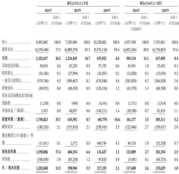 业绩方面,2022年、2023年、2024年和2025年上半年,滨化股份的营收分别约为88.92亿元、73.06亿元、102.28亿元和73.54亿元,净利润分别约为12.03亿元、3.99亿元、2.17亿元和1.36亿元。