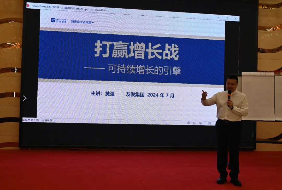 作为系列活动的重要环节,活动邀请到行动教育营销与教学副总裁黄强主讲《打赢增长战》,从打造伟大产品和品牌、干部队伍升级、大客户开发与服务等方面结合友发实际剖析了企业增长规律,提出企业增长新理念。友发集团董事长李茂津、总经理陈广岭、党委书记金东虎等全体高管及各企业中层以上干部和部分员工代表共400余人参加。