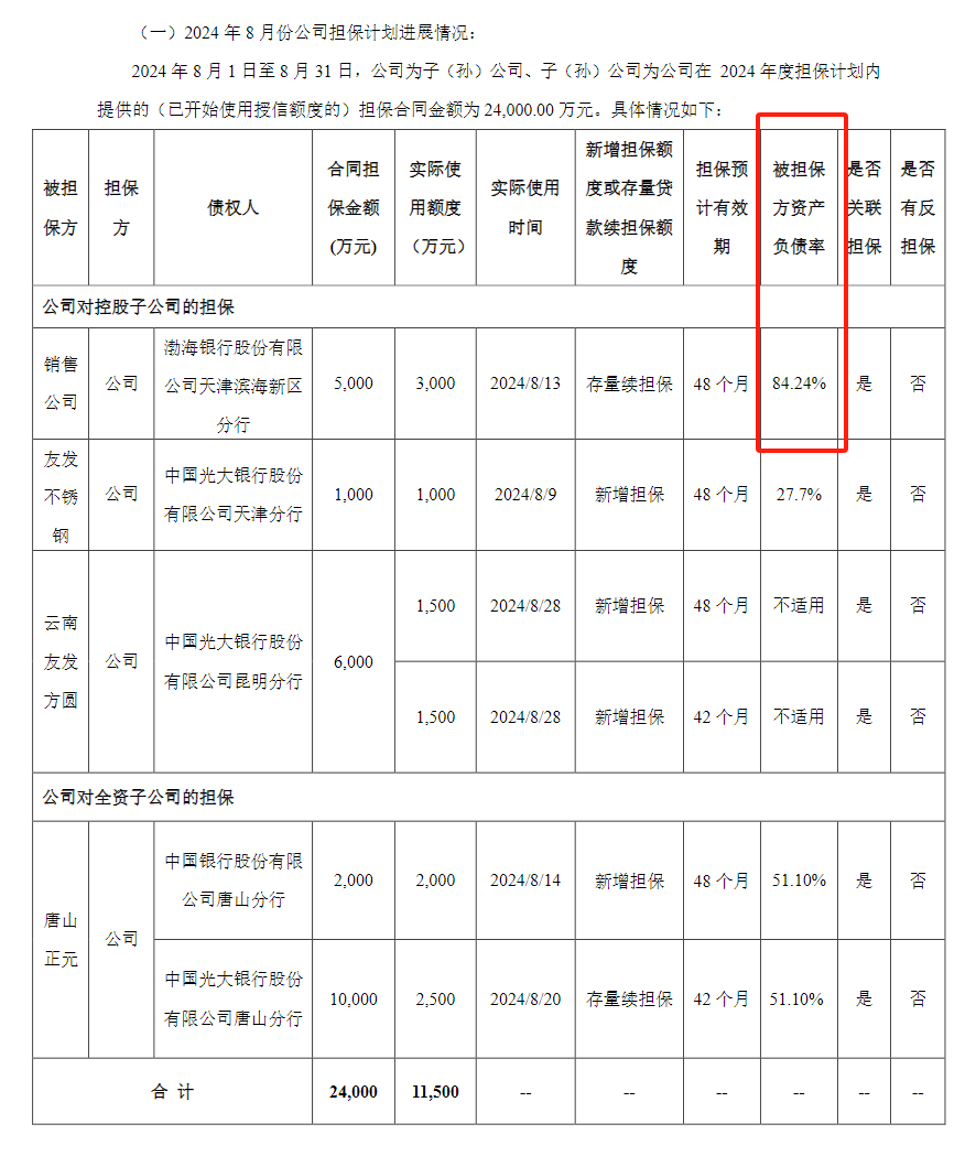 8月担保达2.4亿元,被担保方资产负债率超70%