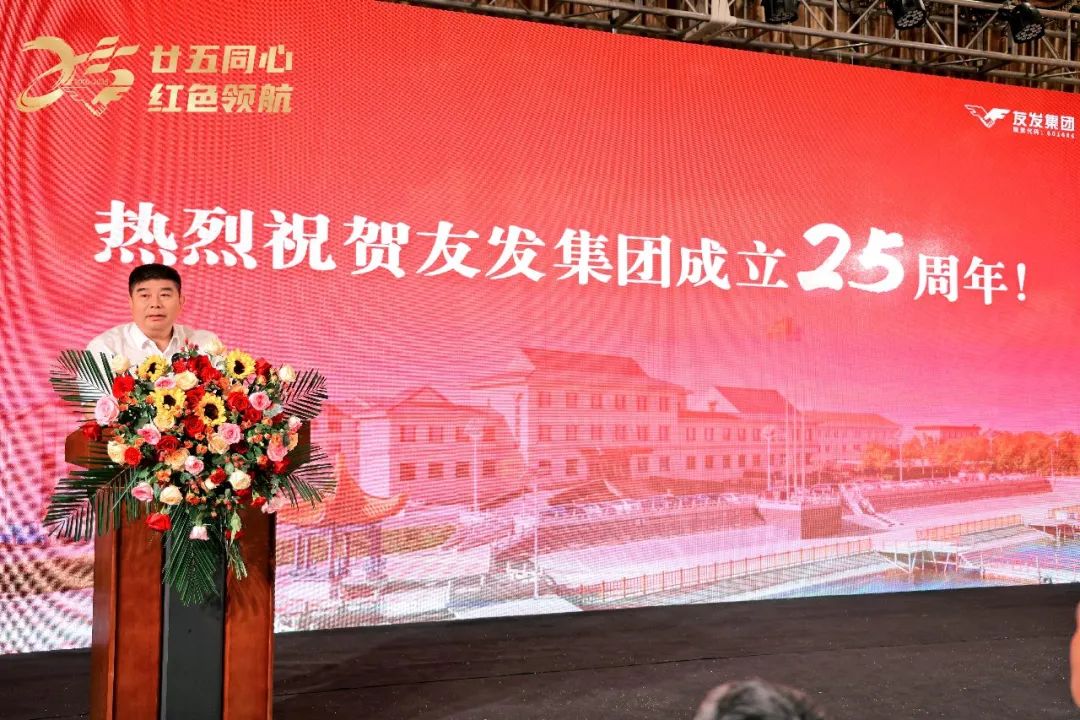 7月1日,友发集团举行系列主题活动庆祝党的生日,纪念友发集团成立25周年。友发集团董事长李茂津、总经理陈广岭、党委书记金东虎等集团领导、各企业总经理及部分员工代表共200余人出席纪念大会,各分子公司通过视频连线的方式参加了会议。会议由陈广岭主持。