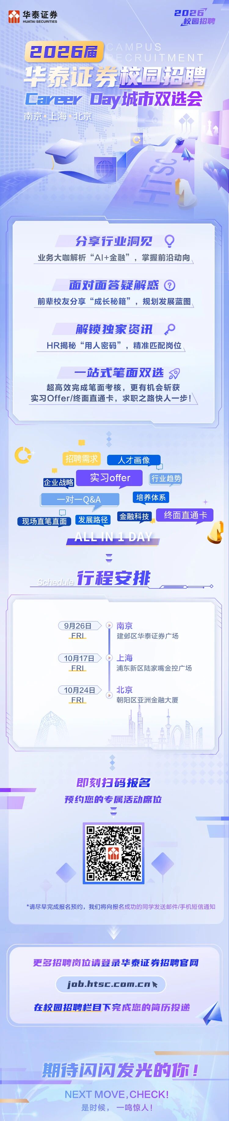 华泰证券2026届校园招聘Career Day城市双选会火热报名中!