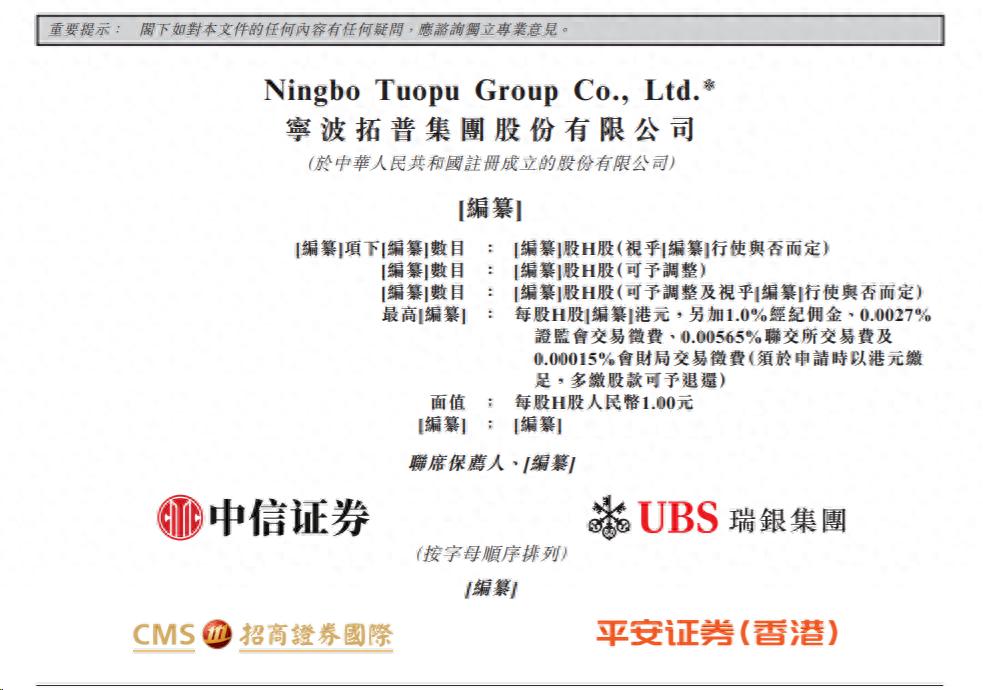 3月31日,据港交所披露,宁波拓普集团股份有限公司(以下简称“拓普集团”)向港交所主板递交上市申请书,中信证券、瑞银集团为其联席保荐人。