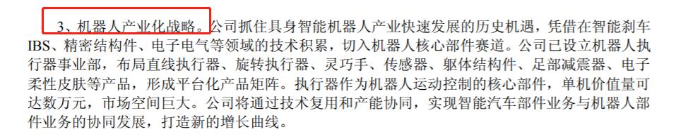 拓普集团在2025年年报中,首次将“机器人产业化战略”列为公司四大战略之一。