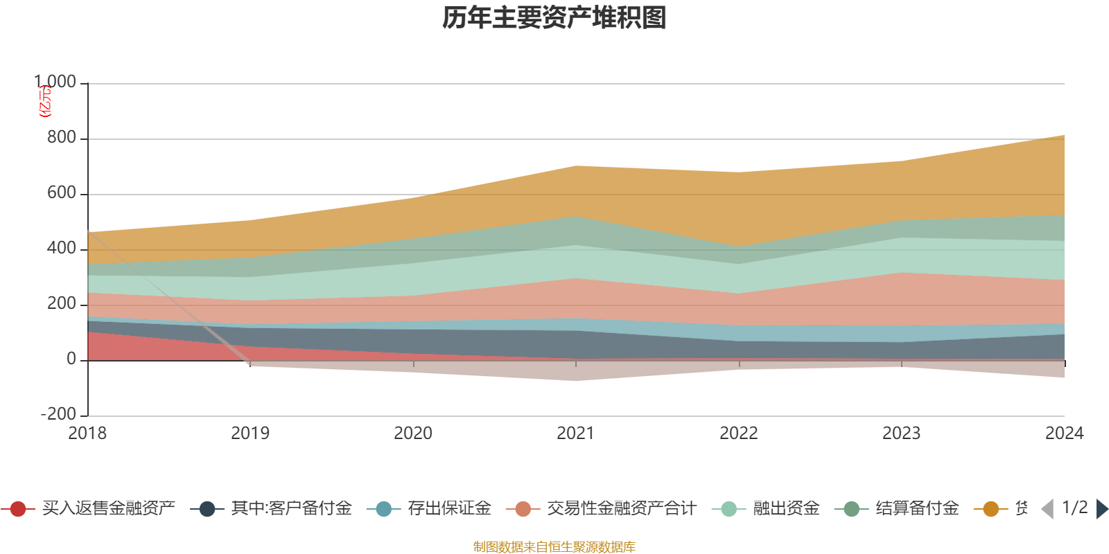 资产重大变化方面,截至2024年末,公司货币资金较上年末增加35.12%,占公司总资产比重上升7.77个百分点;交易性金融资产合计较上年末减少17.66%,占公司总资产比重下降6.55个百分点;存出保证金较上年末减少36.81%,占公司总资产比重下降3.58个百分点;结算备付金较上年末增加48.47%,占公司总资产比重上升3.41个百分点。