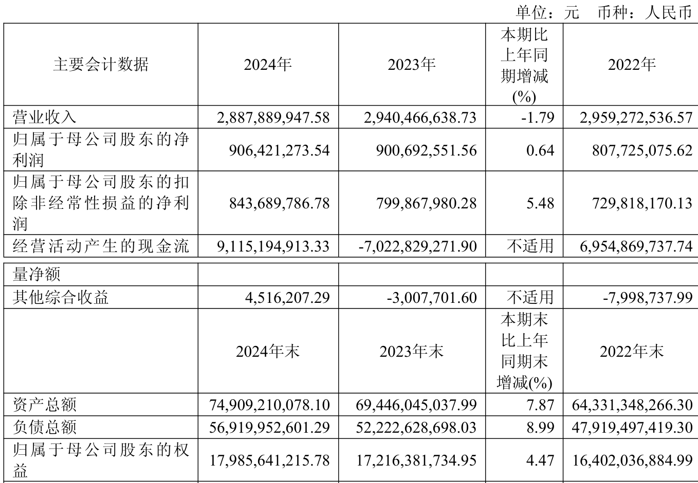 数据显示,2024年公司加权平均净资产收益率为5.14%,较上年同期下降0.22个百分点。