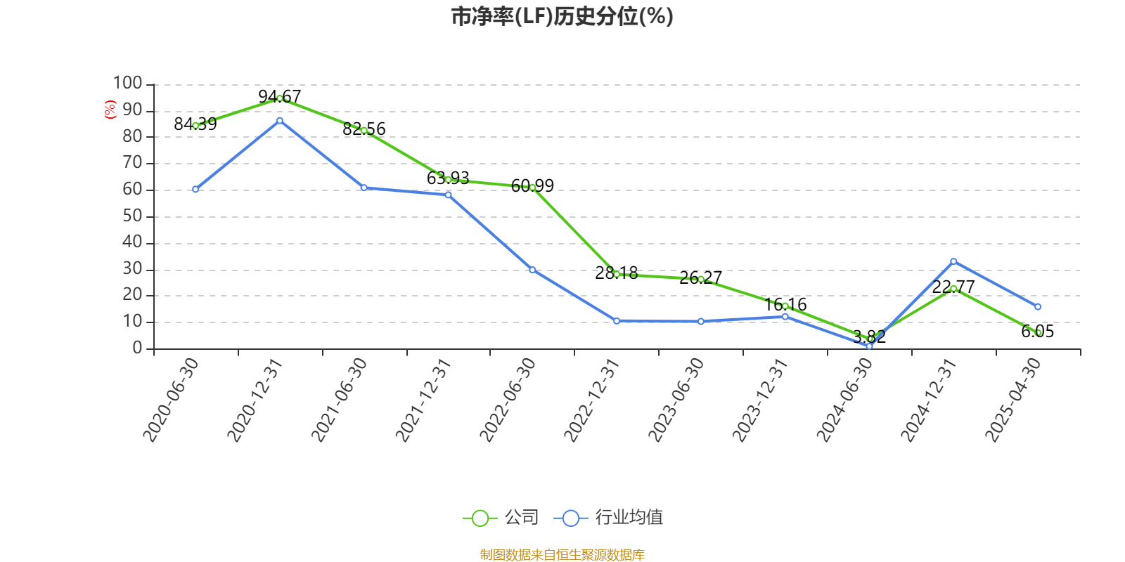 市盈率、市净率为负时,不显示当期分位数,会导致折线图中断。