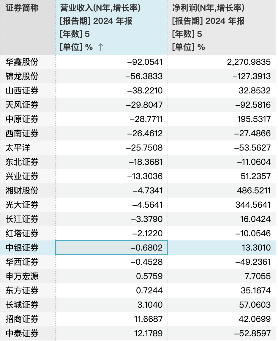 以归母净利润来看,2024年,中银国际证券的净利润为9.06亿元,相比2019年增长超过13%。