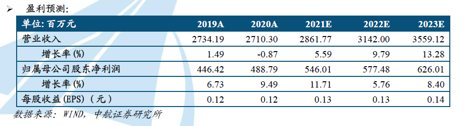 基于以上观点,我们预计公司2021-2023年的营业收入分别为28.62亿元、31.42亿元和35.59亿元,归母净利润分别为5.46亿元、5.77亿元及6.26亿元,EPS分别为0.13元、0.13元、0.14元,我们给予“买入”评级,目标价格17.90元,当前估价分别对应138倍、136倍及126倍PE。