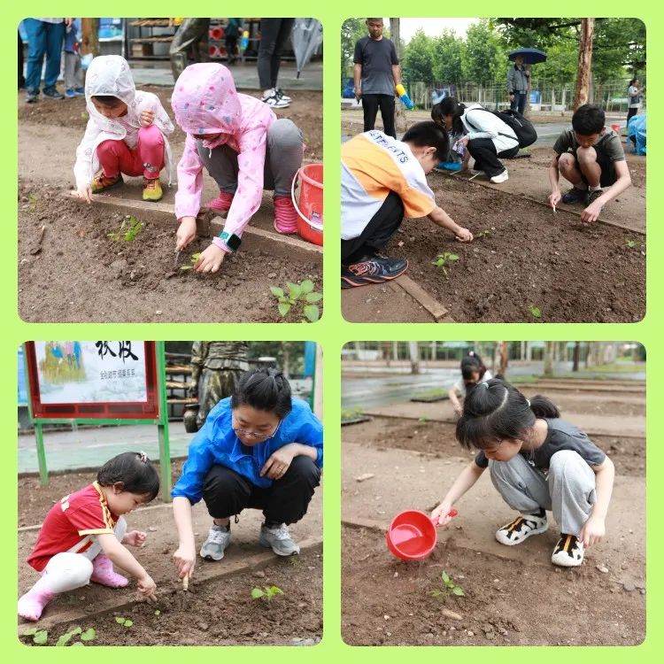 室内活动结束后,孩子们来到了太空育种体验区,与父母一起亲近大自然,体验田园生活。孩子们手拿小铲亲手翻土、插秧,小心翼翼地将一颗颗珍贵的太空菜苗种在土壤中,一番劳作让孩子们体验了劳动的快乐,更充分感受到“粒粒皆辛苦”的深刻意义,以后一定要用“光盘行动”向农民伯伯致敬。