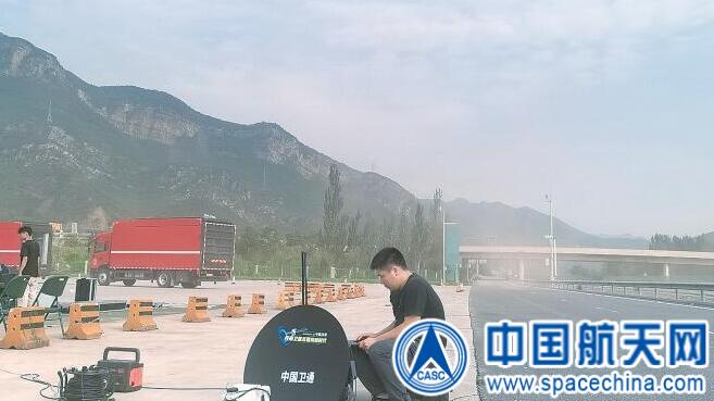 图为中国卫通工作人员赴河北提供卫星通信网络保障服务。